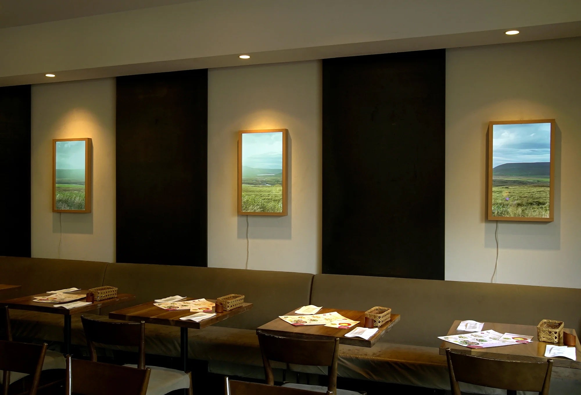 海や山、森や異国の街を見ながらコーヒーを飲んだり食事をしたり。カフェやレストランでの導入も多いAtmoph Windowは、お店のテーマや雰囲気に合わせて空間作りをサポートします。例えばセーヌ川のほとりでフレンチ、ワイキキビーチを眺めながらハワイアン。自然な環境音や風景映像は会話や音楽を邪魔しません。